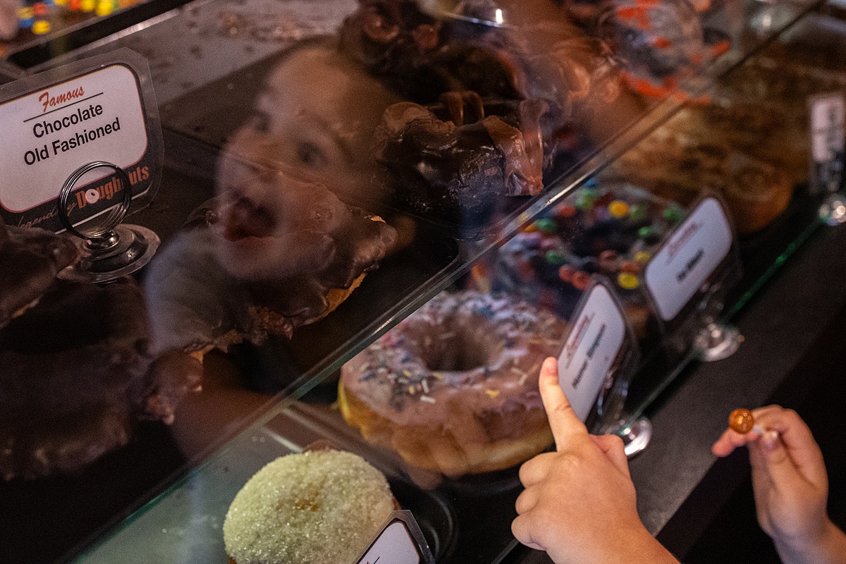 Getting ready, Walking into town, Getting donuts, Playing at the park, Afternoon rest, BBQ with friends.